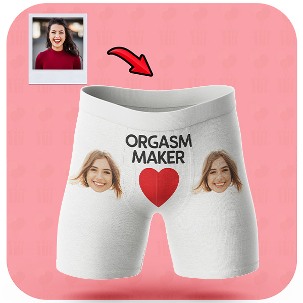 Bokserki z twarzą Orgasm Maker | Śmieszne personalizowane bokserki dla mężczyznyBokserki z Twarzą Orgasm Maker