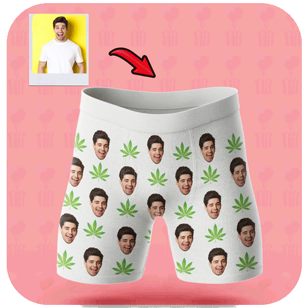 Śmieszne Bokserki z Twarzą Marihuana. Te bokserki z wesołym motywem marihuany i twarzą to świetny prezent dla kogoś, kto ceni sobie humor i oryginalność. Personalizacja poprzez dodanie własnej twarzy dodaje im indywidualnego charakteru.