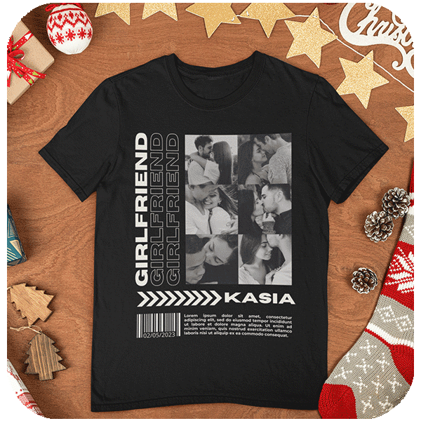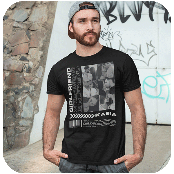 Koszulka Girlfriend z własnym zdjęciem personalizowany prezent dla niej i dla niego. Stwórz koszulkę Girlfriend z własnym nadrukiem! Dodaj zdjęcie lub napis w kreatorze. Idealny prezent dla dziewczyny