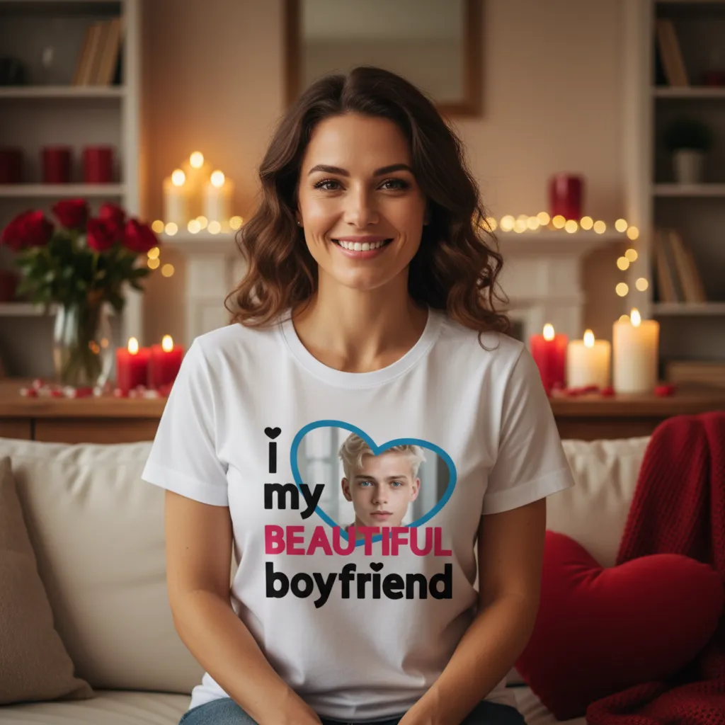 Koszulka I Love My Boyfriend to hit, jeśli szukasz czegoś, co od razu robi emocje i wygląda świetnie na co dzień. Ta koszulka ze zdjęciem to prawdziwy personalizowany prezent, bo dodajesz fotografię chłopaka i masz unikalny nadruk, którego nie ma nikt inny. Idealnie pasuje jako koszulka dla dziewczyny od chłopaka oraz jako wyjątkowy prezent dla pary. To świetny wybór, gdy wpisujesz pomysł na prezent dla dziewczyny albo chcesz, żeby prezent na walentynki był naprawdę zapamiętany. Jeśli lubisz też luźniejszy klimat, ta koszulka może działać jako śmieszna koszulka dla dziewczyny, ale nadal z romantycznym przekazem.