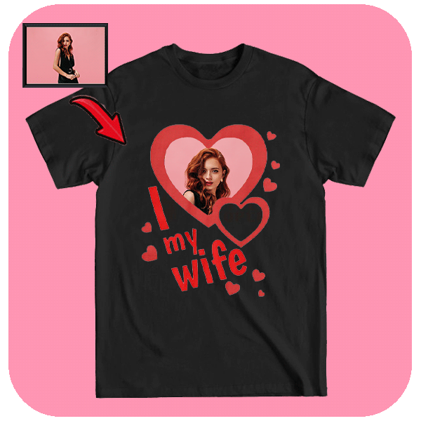 Koszulka I Love My Wife z Zdjęciem Twojej Żony. Celebrowanie miłości nigdy nie było tak osobiste! Koszulka I Love My Wife z fotografią twojej żony to idealny prezent, który sprawi, że poczuje się wyjątkowo.