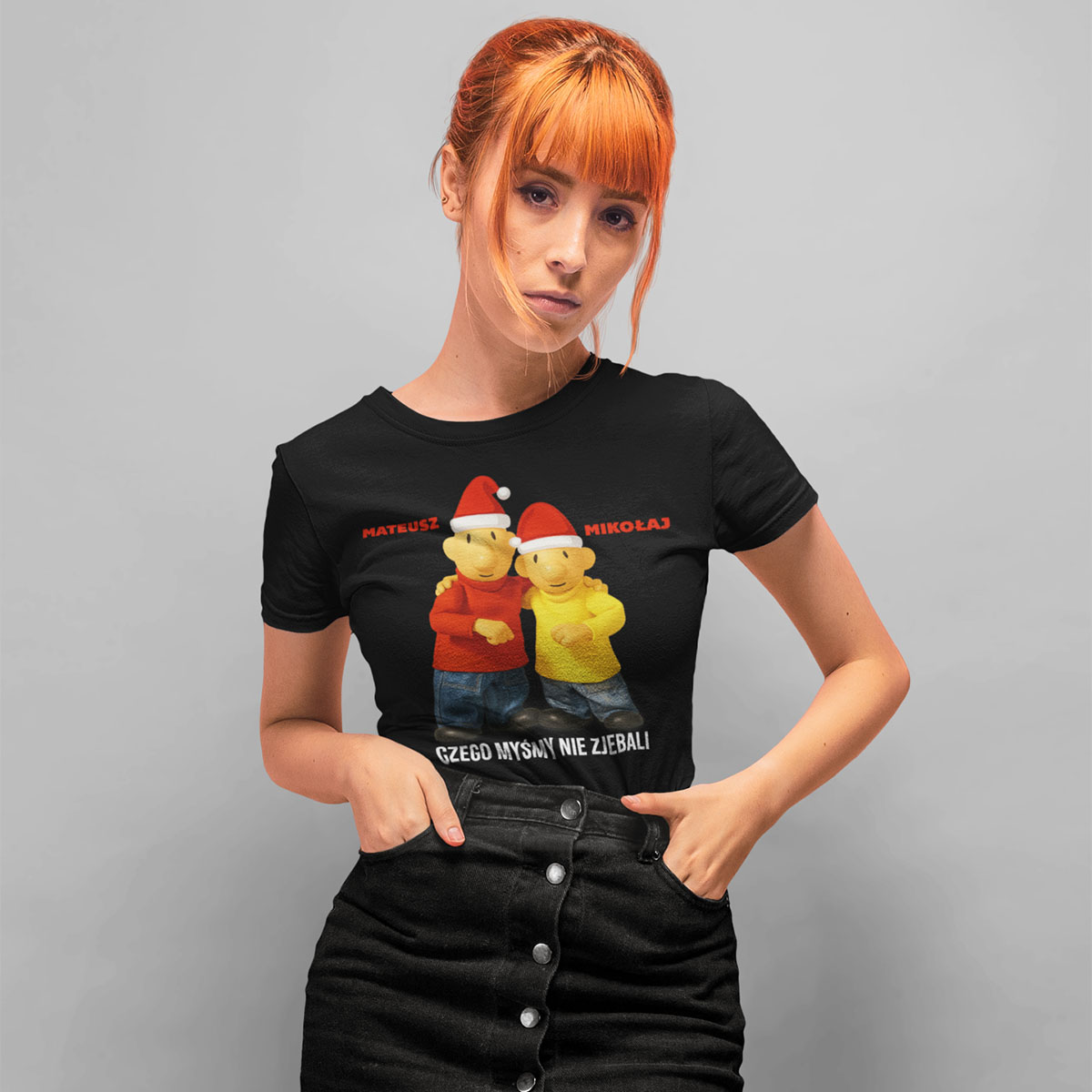 Idealna na spotkanie rodzinne, świąteczną sesję zdjęciową czy firmową wigilię. Nadruk inspirowany kultowym duetem sąsiadów to gwarancja uśmiechu – a jeśli chcesz, możesz dodać własne imię lub podpis, by stworzyć wersję spersonalizowaną!