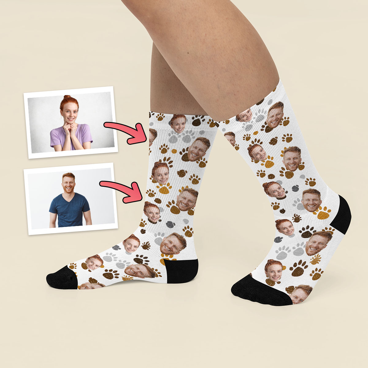 Wybierz zdjęcie, które chcesz umieścić na skarpetkach, a my zajmiemy się resztą. Nasz proces jest prosty i szybki, zapewniając, że Skarpetki ze zdjęciem będą wyjątkowym i przemyślanym prezentem. Całkowicie personalizowana skarpetka: możesz zaprojektować skarpetki według własnych upodobań, z dowolnym wzorem jaki tylko chcesz. Dostępne opcje wycinania twarzy i tła ze zdjęcia