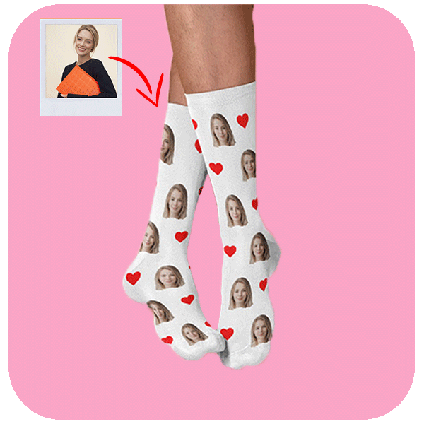 Skarpetki z Twarzą Serca to wyjątkowy sposób na wyrażenie uczucia i dodanie osobistego akcentu do codziennego ubioru. Te urocze skarpetki zdobione sercami i Twoim wizerunkiem to idealny sposób, by nosić bliską osobę (lub siebie) zawsze przy sobie.
